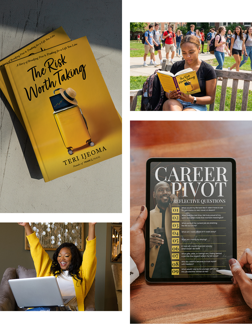 One night, I wrote two words: trade and travel. I didn’t leap blindly — I studied, practiced, and learned to manage risk. Trading changed my income, but more importantly, it changed my posture. It gave me options, and options gave me courage. The true transformation wasn’t financial — it was alignment. That’s why I wrote The Risk Worth Taking: to help you choose your life on purpose.